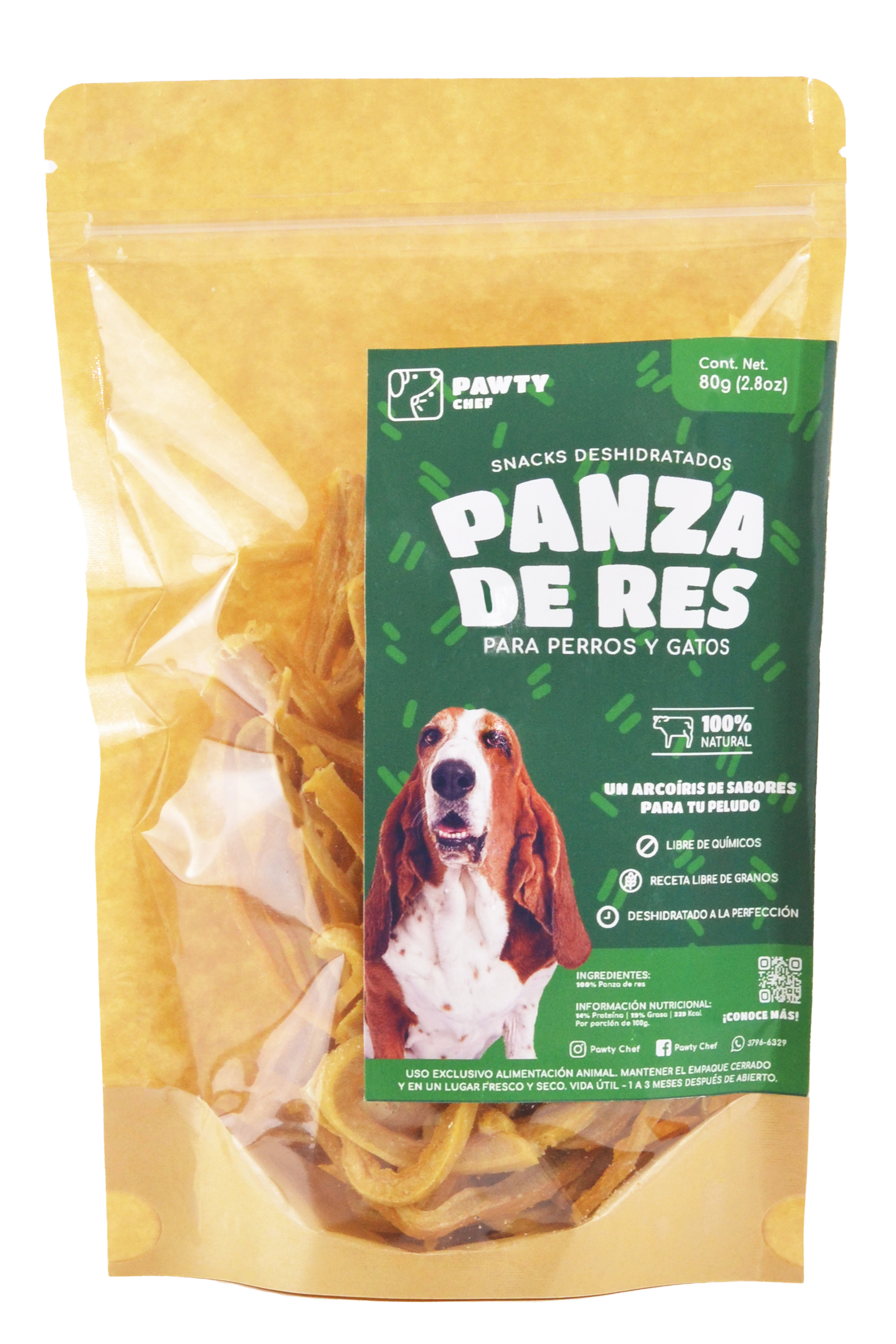 🌿 La panza de res (tripa verde) deshidratada Pawty Chef es un súper alimento ancestral lleno de beneficios. Con un sabor y aroma irresistibles para los perros, aporta probióticos naturales que favorecen la digestión y enzimas que mejoran la absorción de nutrientes. Un snack funcional que nutre desde el interior y encanta en cada bocado.
